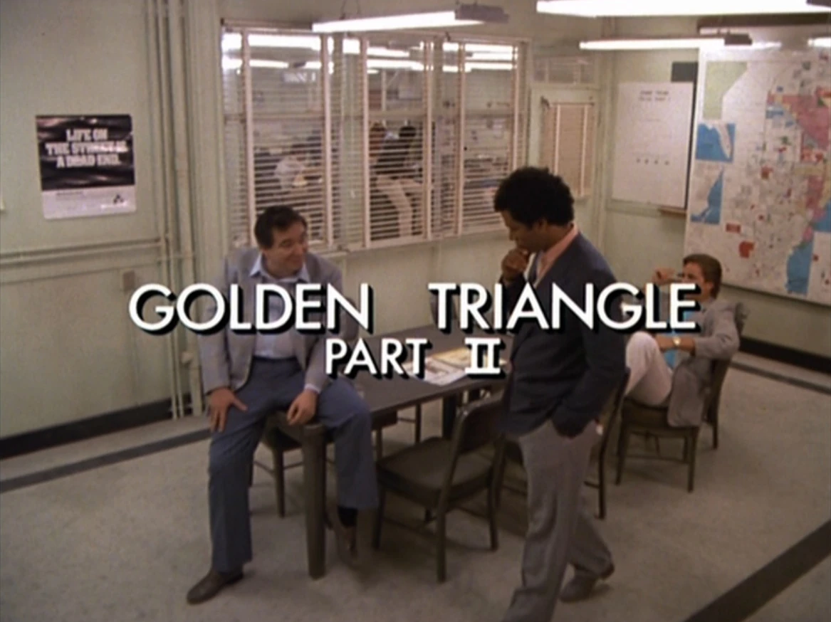 - This episode was simply called "Golden Triangle" (with no part number) when it originally aired, but the name was changed to "Golden Triangle (Part II)" when it went into syndication, presumably to better link it with the preceding episode, which begins the story. This second title is now it's official one, and has been used on the show's VHS and DVD releases, and online.